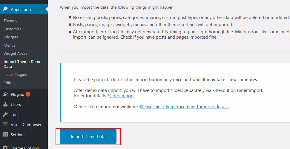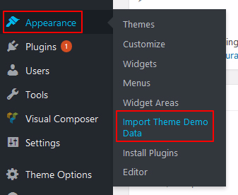 - Go To : Appearance > Import Theme Demo Data