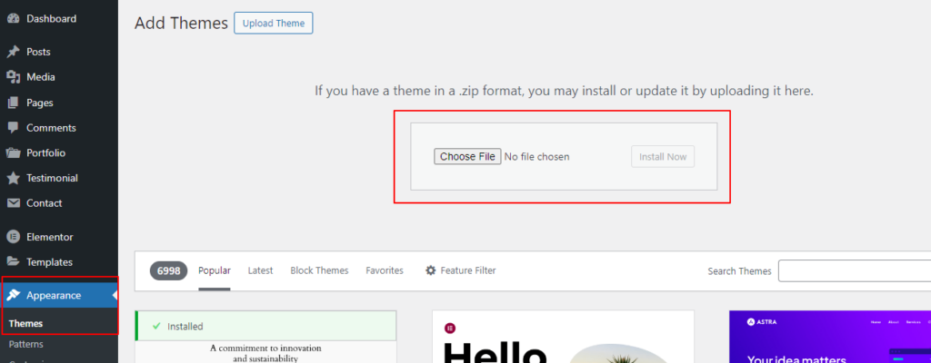 - 4. Browse for the updated theme zip file you have just downloaded. Click the “Install Now” button.